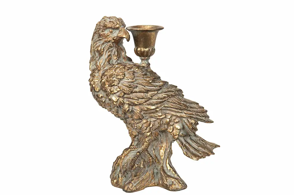En ståtlig örn med ljushållaren på ryggen blir ett storslaget sätt att presentera levande ljus. Tillverkad i metall.