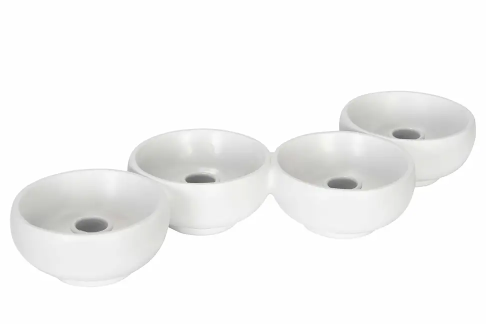 Ljusstake med skålar med plats för fyra ljus. Fyll skålarna med mossa och fina grenar för at få en fin presentation med levande ljus. Tillverkad i poly. Finns i flera färger.