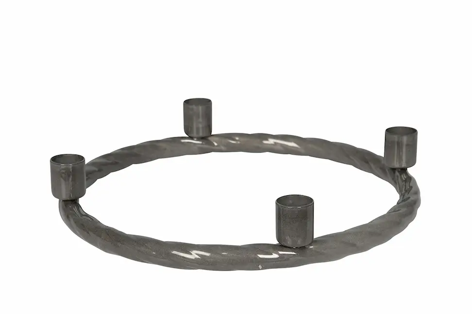 En vacker snirklig ring för fyra kronljus. Passar perfekt som adventsljusstake eller när som helst som du vill ha levande ljus. Tillverkad i metall. Finns i flera färger.