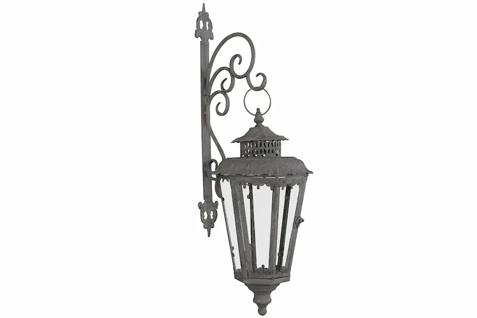 En vacker vägghängd lykta med sirliga detaljer. För dig som tycker om vintagekänslan. Tillverkad i metall och glas.