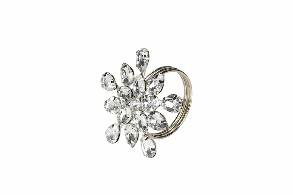 Gör dukningen extra vacker med denna eleganta servettring i metall med fina glasdetaljer. Finns i flera färger.